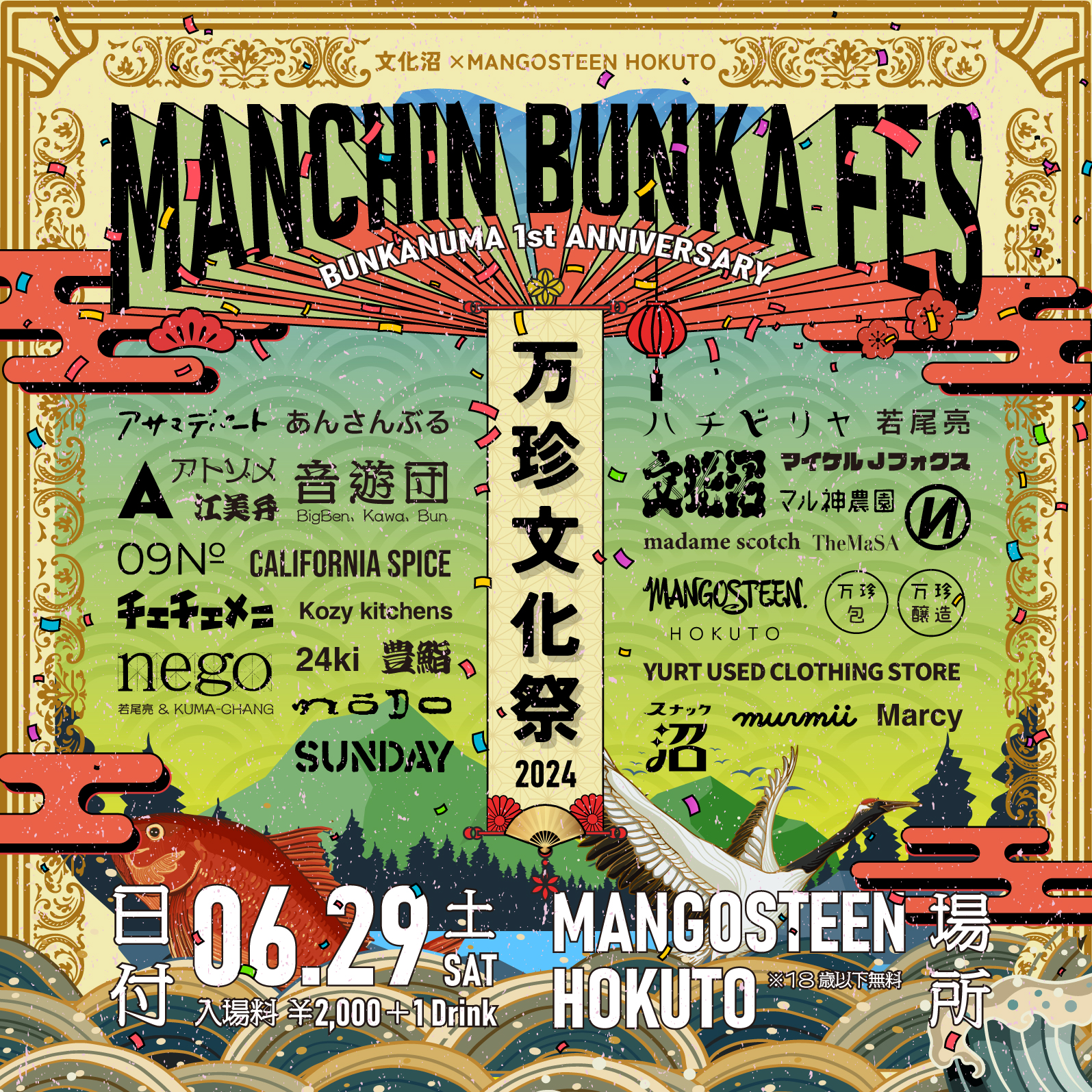 6/29(土)は、文化沼の一周年を記念して、北杜市のMANGOSTEEN HOKUTOと共同で一日限りの『万珍文化祭2024』を開催いたします。
