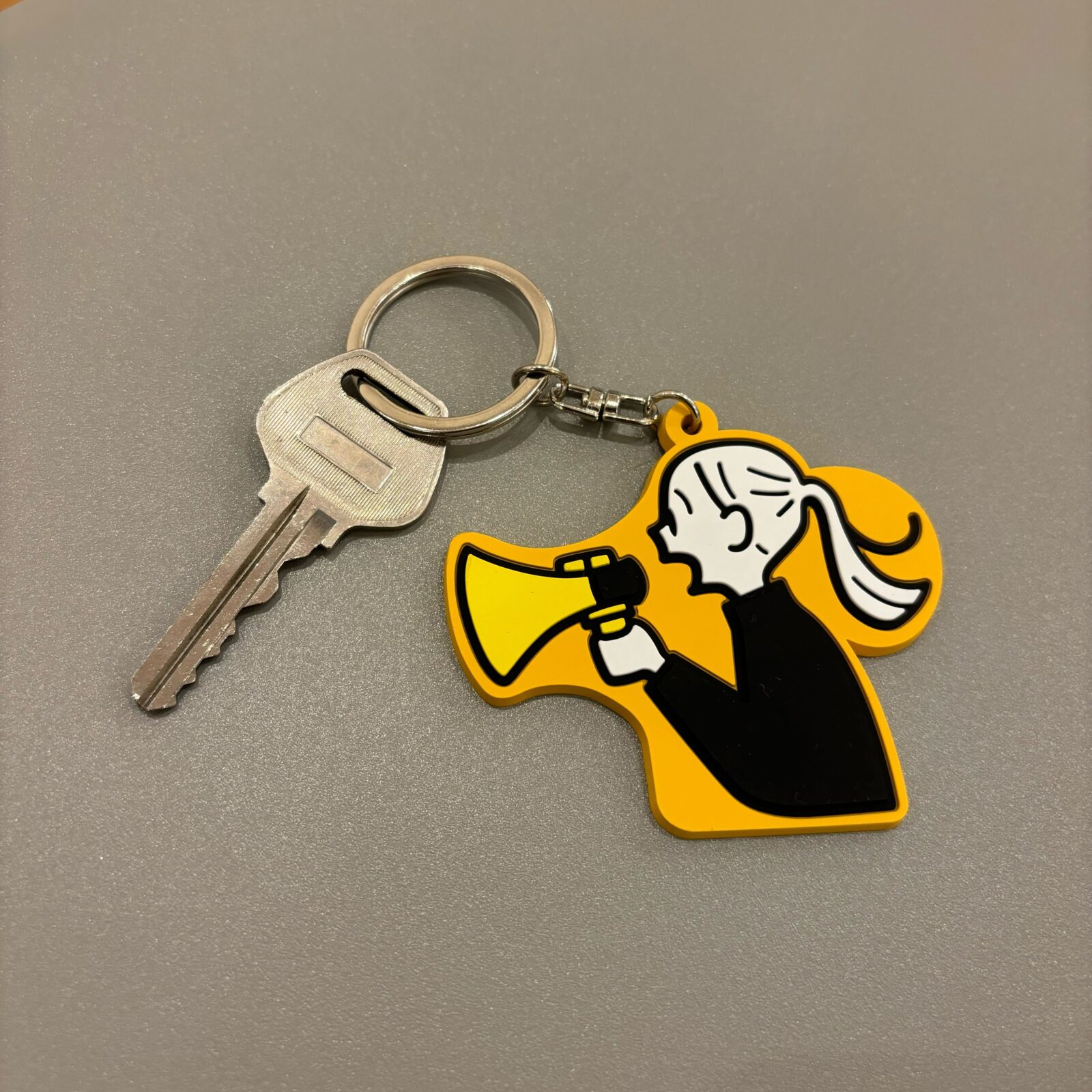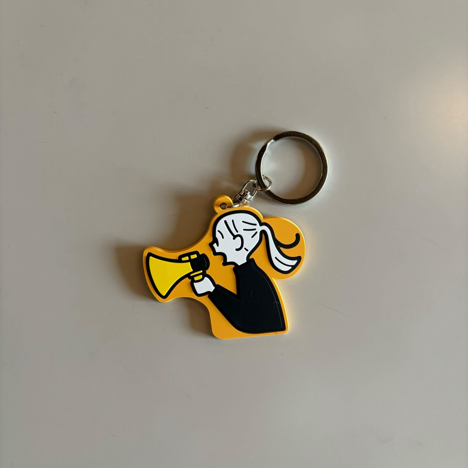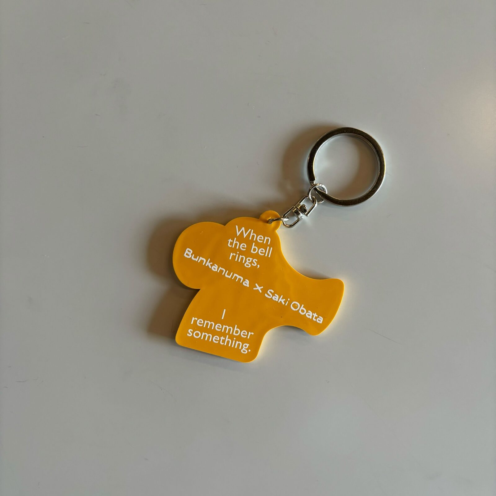 小幡彩貴 個展 『鐘が鳴ると何かを思い出す』 の開催を記念して作られたラバーキーホルダー。
