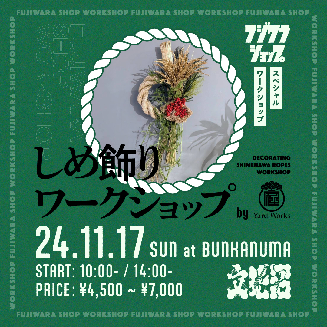 フジワラショップに出店いただいてるYardWorksを文化沼にお迎えして、しめ飾りワークショップを開催します!