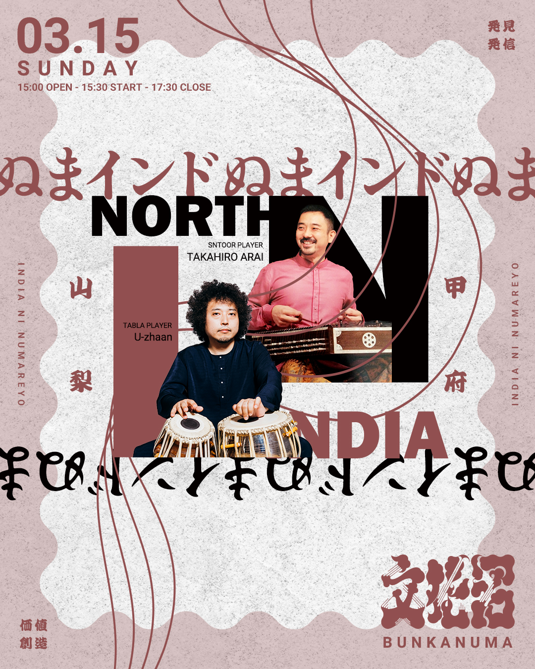 タブラ奏者のU-zhaanさんとサントゥール奏者の新井孝弘さんが文化沼にやってきます。