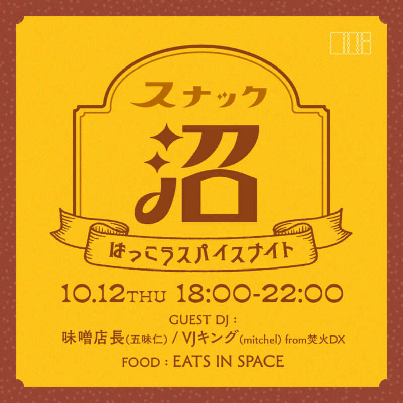 次回の「スナック沼」は、GUEST DJ&FOODをお迎え。